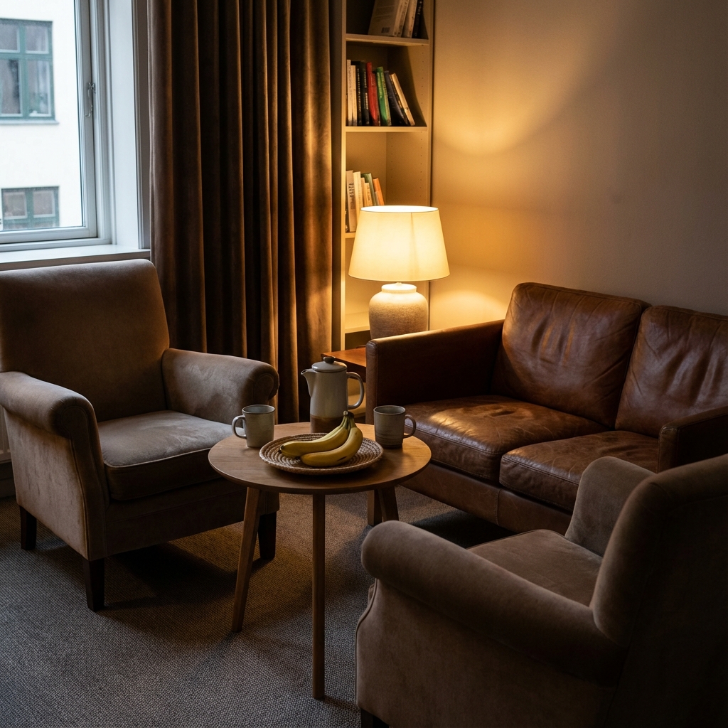 Intimate meeting room for small group discussions and private meetings.